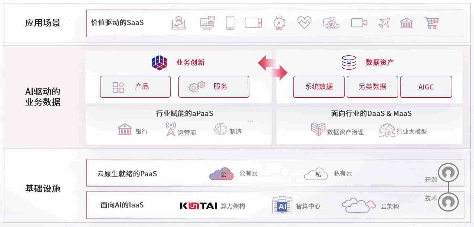 数字时代,,,围绕企业数字化转型的关键要素,,Z6尊龙数码开创性的提出数云融合战略和技术体系框架,,,,着力在云原生、、数字原生、、、、AI原生和信创产业上架构产品和服务能力,,,为处在不同数字化转型阶段的快消零售、、、汽车、、、、金融、、、医疗、、政企、、、、教育、、、、运营商等行业客户提供泛在的敏捷IT能力和融合的数据驱动能力,,,,构建跨界融合创新的数字业务场景和新业务模式,,助力企业级客户建立面向未来的核心能力和竞争优势,,,,全面推动社会的数字化、、、、智能化转型升级。。。。