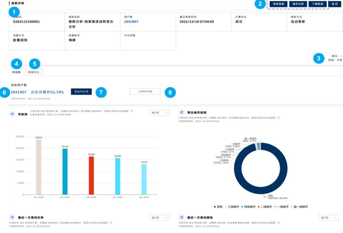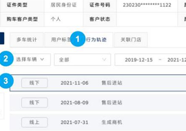 通过客户全景视图及客群分析,,,,可挖掘客户潜在业务需求,,,,并针对单客行为轨迹,,,,制定个性化服务。。。同时经销商还能基于客户行为路径分析,,,,提高运营效率。。。