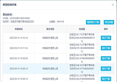 1)提供车辆上传报文数据项的合规性校验,,直观展示报文合格率